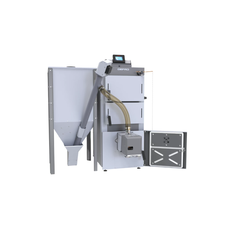 The boiler is equipped with a burner with automatic cleaning as standard, as well as an APC K SLIM controller that allows operation of four pumps and one mixing valve. An additional advantage is the feed hopper, which can be positioned on any side - this makes it easier to fit the unit into small boiler rooms.